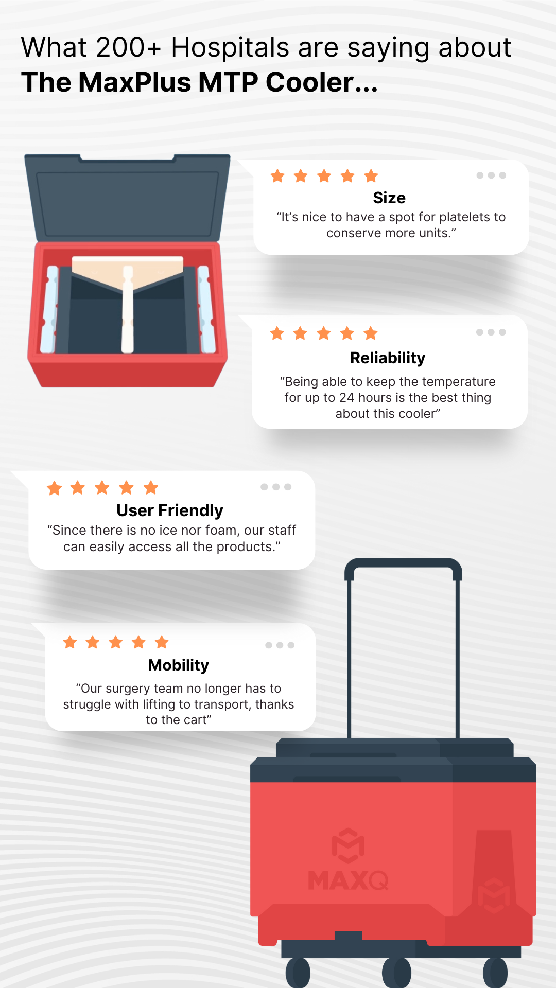 At MaxQ, we pride ourselves on innovation that truly makes a difference. The patented, AAABB SCOPE-certified, MaxPlus MTP Cooler®, has transformed how blood is dispensed during Mass Transfusion Protocols (MTP) in hospitals nationwide. But don’t just take it from us – here’s what over 200 hospitals have to say about our game-changing cooler.