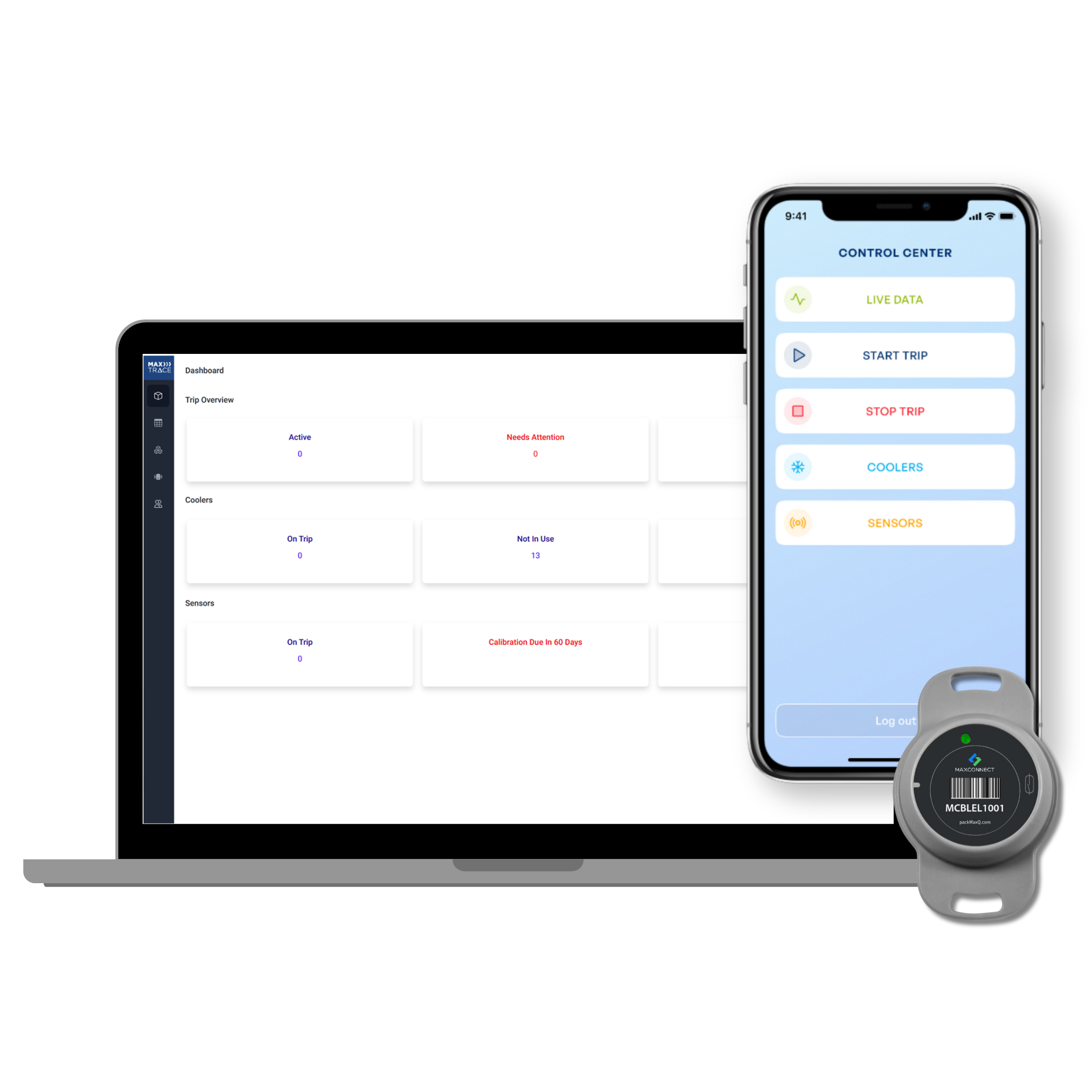 MaxConnect is a purpose-built blood bank temperature monitoring and compliance solution designed to protect blood products transported outside the hospital blood bank. Using advanced Bluetooth® temperature sensors, MaxConnect continuously captures end-to-end blood cooler temperature data across a wide range (-20 °C to 60 °C) at 15-minute intervals, ensuring reliable documentation of blood transport temperature compliance. Compatible with any hospital blood bank cooler, MaxConnect pairs with secure mobile and web applications that allow blood bank staff to quickly assign sensors, start and stop transport trips, and automatically store temperature records in the cloud. The platform also simplifies blood bank operations by providing real-time visibility into cooler and sensor inventory, supporting MTP workflows, and maintaining NIST-traceable calibration records and cooler validations to meet regulatory and accreditation requirements.